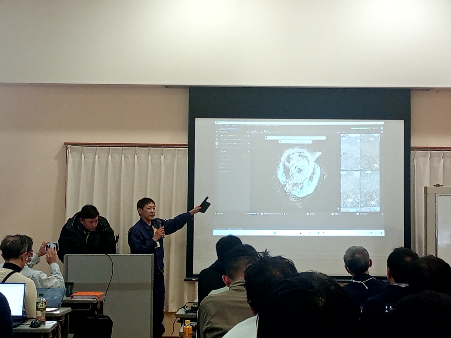 2026.1.30 技術研修「デジタル時代の遺跡踏査」に参加しました。 日本文化財保護協会主催で1月26日、27日に実施された技術研修「デジタル時代の遺跡踏査」に参加受講しました。研修では包蔵地データをGISに表示し、携帯端末を伴い現地にて講師によるLidar計測などが行われました。弊社も携帯端末を用いたRTK測位の実演を行いました。